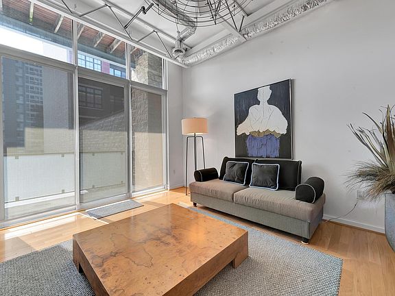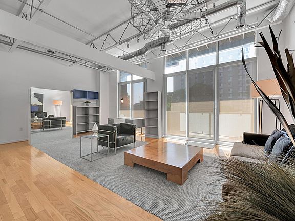 Storage roomTall ceilingsContemporary loft buildingIn-unit laundryModern kitchenGleaming hardwood floorsExpansive floor-to-ceiling windows