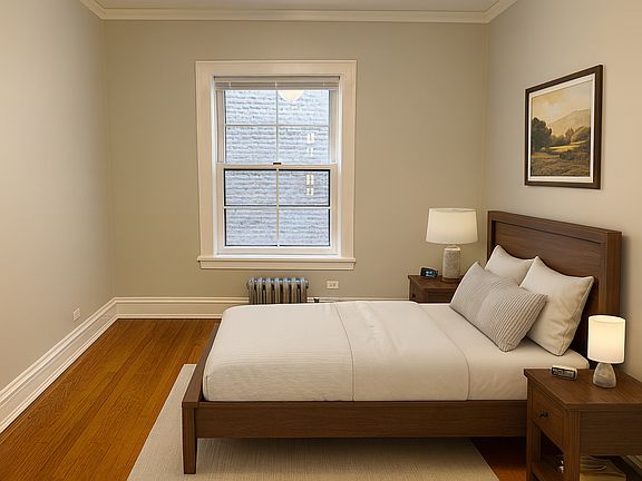 This nice two-bedroom, one-bathroom apartment is situated in Evanston, IL, a suburb just one block from Lake Michigan's beachfront. Featuring natural hardwood floors throughout, the apartment offers a spacious living area and dining combo flooded with natural light. Laundry and storage facilities are conveniently located within the building. A monthly fee of $35 covers utilities such as water, trash, sewer, heat, lawn care, snow removal, and maintenance. The apartment has undergone a full repaint and will be going through a deep cleaning.