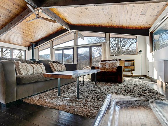 This completely renovated 2,320 sf mid-century modern gem is the definition of turn-key. One of the original homes in Old Sugarbush Village, 614 Upper Village Road is set on 1.21 acres and offers spectacular views of Lincoln Peak ski trails as well as an easy hike to ski in/out access via the condo connector trail.Thoughtfully conceived to maximize space and functionality, the home's two levels feature an open floor plan living space, 3 bedrooms plus office and bunk room, 3 full baths, and a walk-out basement. All new windows, sliders,floors, lighting, kitchen, and baths integrate with originalexposed beams and woodwork for function and style. A wrap around deck with cable railing is perfect for apres ski and a fenced-in yard is great for dogs. With a solid concrete foundation, low maintenance cedar siding, a standing seam roof, andrecently upgraded systems, the package is complete.Won't last long! Standard Sugarbush ROFR in deed.