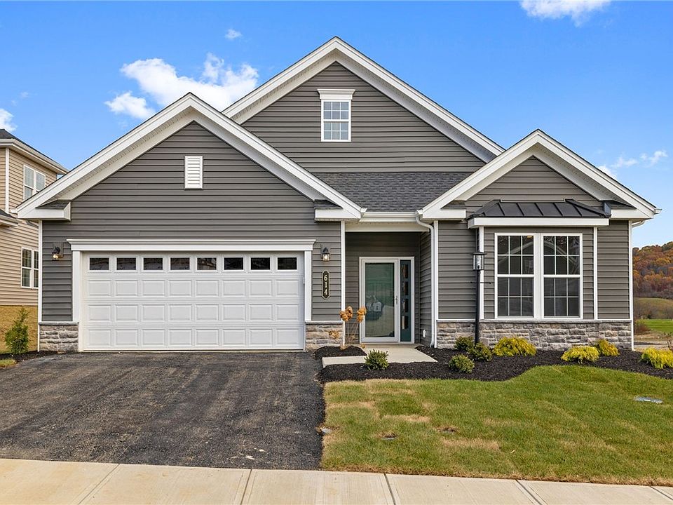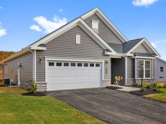 Welcome to effortless one-level living in this stylish new construction home located in an upscale 55+ community (Traditions of America Rose Ridge). If you do not have time to build but want new construction, this home is for you. This thoughtfully designed 3 bedroom, 2 full bath residence features an open concept layout connecting the living, dining, and designer kitchen—perfect for both everyday comfort and entertaining. The kitchen and baths showcase high-end finishes and custom touches throughout. You’ll appreciate an abundance of storage, including a large laundry room with a full wall of cabinetry plus additional storage in the second-level utility room. The attached garage is exceptionally well-planned with a slop sink, man door, floor drain, and extra insulation for added convenience and comfort. Relax outdoors on the screened-in porch or the adjoining patio while enjoying scenic views of the rolling hills. Modern living, beautiful surroundings & thoughtful design-this is it!!