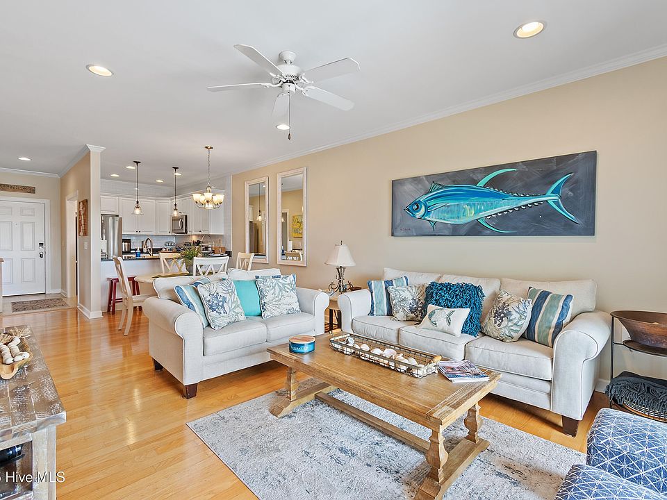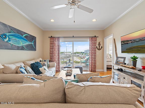 Hidden Gem With Intracoastal Waterway Views In The Charming Historic Downtown District of Southport, NC. This fully furnished 2Bed/2Bath end unit condo w/elevator looks like it's straight out of Coastal Living Magazine! Back on the market after buyer was unable to sell own home and at no fault of the sellers. The covered porch will be your new favorite place to relax and entertain while enjoying the views overlooking Morning Star Marina and Historic Southport Riverwalk Marsh Park, the community pool, and even the boats going by on the Intracoastal Waterway. From the moment you walk in this gorgeous unit you are greeting with tons of natural light shining through the open floor concept and the beautiful views from the porch. The kitchen has ample storage and counter space along with updated appliances and breakfast bar with bar stools overlooking the bright dining area and living room. There are two spacious bedrooms with large closets, each with their own private bathrooms with double vanities. There is a large laundry closet, large pantry space in the hallway, and another storage closet just off of the kitchen. The sellers have taken meticulous care in updating, painting, replacing all appliances, and adding unique details (like the in wall wine cooler). The carport/private parking area (fits 2 vehicles) is directly below the unit and has a and sizable storage closet, an electrical outlet (perfect for electric an vehicle), and a water spicket. The community pool is in front of the unit along with a walking path leading straight to the Riverwalk Marsh Park, dog park, & Marina. This is one of the best units in the complex located at the end of the last building (so no traffic noise) closest to the water and has a nice grassy area beside the unit (perfect for a dog). Short term rentals are not allowed which helps maintain the peaceful vibe. With its close proximity to everything in the heart of downtown, you will feel completely submerged in the charm of Southport. Enjoy incredibly easy access to restaurants, shopping, and anything you desire only a short walk, bike ride, or golf cart ride away. The ultimate turn key home