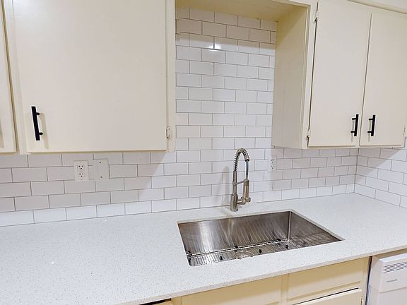 Spanish revival floor tileFresh paintNew floorsQuartz countertopsHeavy gauge stainless sink