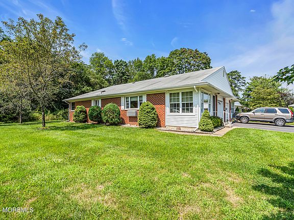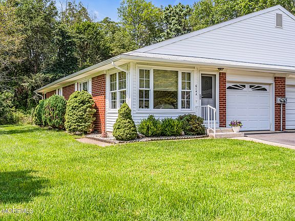 Welcome Home! Move-in ready and located on a quiet cul-de-sac, this desirable 2-bedroom, 2-full bath Sherwood model offers comfort, space, and privacy. With an attached garage and serene wooded views in the backyard, you'll enjoy peaceful living in a beautiful setting. Step into the bright front sunroom—perfect for relaxing, reading, or converting into a cozy den or home office. Inside, beautifully refinished hardwood floors flow throughout the living room, dining room, hallway, and both bedrooms, adding warmth and charm. The kitchen is updated with brand-new flooring, tastefully refinished cabinets, and a delightful over-the-sink window providing natural light. Additional highlights include vinyl windows, a laundry room with a utility sink and storage cabinets, and pull-down stairs to a large, stand-up attic that runs the length of the home offering ample storage space. Recent updates include a new AC unit, dishwasher, microwave, and fresh interior paint throughout. Enjoy all the benefits of Crestwood Village 1, including a golf course, dog park, shuttle bus service to local and regional shopping, and a clubhouse featuring pool tables, a gym, bocce, shuffleboard, and a wide variety of clubs and activities.