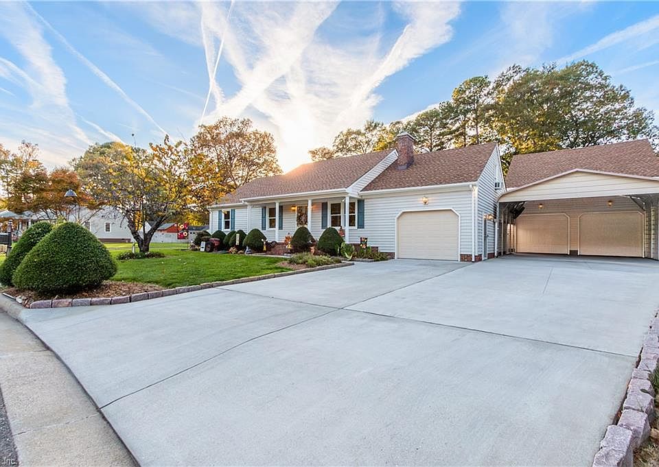 WOW! This huge corner lot, well-maintained ranch, in the heart of Chesapeake, is a must see! Parking is a breeze with a double-wide extra long driveway and carport. The beautiful landscaped backyard features a deck w/gazebo, huge shed w/lots of space and the best detached garage you've ever seen!! The house has updated bathrooms, hardwood floors, replacement windows, New appliances, HVAC, Roof, & Water Heater. Detached garage has tons of amenities: electricity, half bathroom, is heated/cooled, just to name a few! Has a well, irrigation system & rid o rust feature. It's conveniently located near the interstate! Make an appointment today!