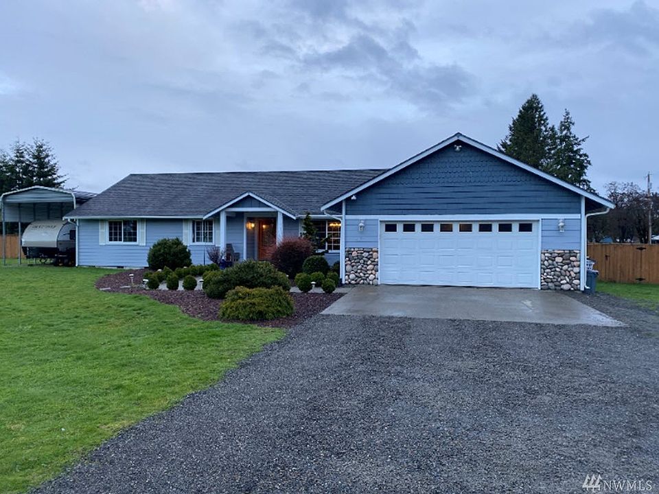 Welcome home! Spacious open floor plan rambler with 2,276 sq ft on 1.3 acres (corner lot) built in 2007. Beautiful Brazilian Tiger wood floors, NEW carpet, tile kitchen counters, slate floor entry, solid knotty pine wood doors. Concrete patio with gazebo in a fully fenced backyard w/storage building. River rock accents on front of house. Also, a large metal carport & gated entry. Convenient location to freeway and services in growing Rochester/Grand Mound area. Buyer to verify all info.