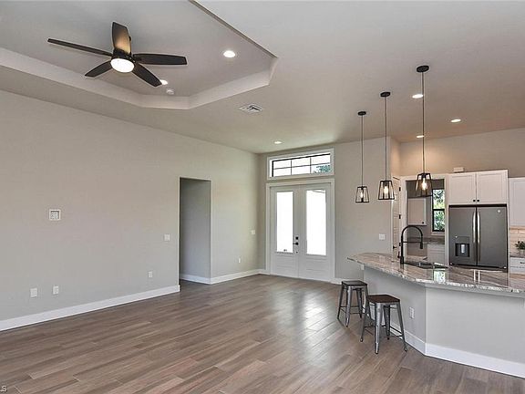CHECK OUT THE VIEW AND CANAL! (Pictures are from a previous build. New photos will be up Saturday) Another brand new BEAUTIFUL home just completed by Truecore Homes in the highly desirable Buckingham Park community. This 3/2 home offers over 1,800 square ft. of living space with stunning upgrades throughout. A brick paver driveway and a tall double door entryway welcomes you into the open great room with an 11 ft. tray ceiling and recessed lighting, plus 8 ft. doors and stunning wood plank floor tiles. The kitchen features white shaker style wood cabinets with soft close drawers, a beautiful granite countertop island and upgraded premium appliances. The master suite offers a tray ceiling, beautiful walk through tiled shower with a rain shower head, separate soaking tub & beautiful granite counter tops. In addition, granite countertops have been installed in the finished laundry room and guest bath. The builder spared no expense with impact windows and doors, peel-n-stick roofing underlayment, electronic controlled irrigation system, and a top of the line Trane A/C unit. The private wooded setting from your rear screened paver patio completes this home. No HOA fees!