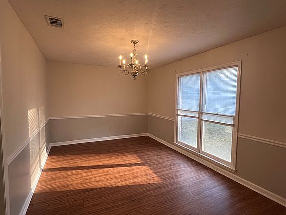 3 bed/2 bath house with a great room with a fireplace, a formal dining room, an eat-in kitchen, and a laundry room. The backyard is fenced and has an outbuilding for storage. There is a deck on the back of the house.