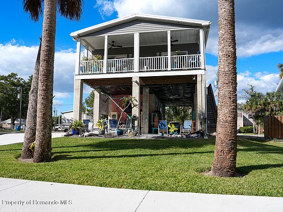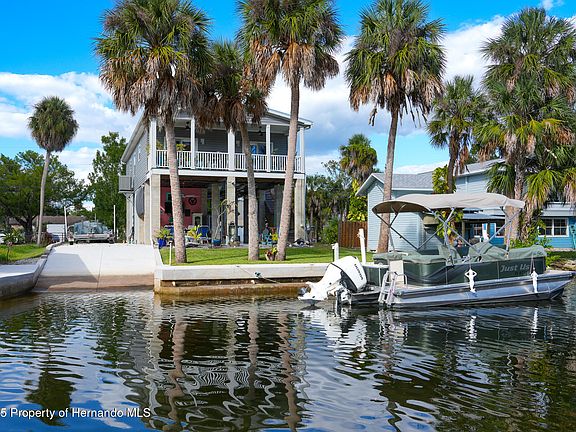 WELCOME HOME to this exquisite Waterfront Gulf Access 3 Bedroom/ 2.5 Bath Modular Home in Palm Grove Colony. It sits right in the middle of the Nature Coast on a Canal leading to the Mud River that connects to the Gulf and Weeki Wachee River. There are 9ft. Ceilings with Crown Molding throughout for an elegant touch. The Master Bath features a large Walk-In Closet and Under-Sink Outlets. HVAC has a 7-year Warranty. There is a 1-year-old Washer and Dryer Combo. The Open Floor Plan with Outdoor patio and Porch are perfect for Indoor/ Outdoor Entertaining Waterside. Nestled in this Quaint Community, this property faces South on the backside for beautiful Sunrises over the Weeki Wachee Preserve and Gorgeous Sunsets over the Gulf. A quick Kayak paddle to the Weeki Wachee River, Rodger's Park and Local Restaurants such as Upper Deck. Resting on High Stilts with Hurricane Impact Windows, it also features a 3-year-Old Metal Roof and 18 Helical Anchors. This Home has its own private Boat Ramp for launching into the River. There is a RV pad with a 50Amp Plug that has Sewer Hookups on both sides of the pad. It features 4 20Amp Outlets for a Downstairs Kitchen. The downstairs Plumbing and Electrical were designed for the Ceiling to be installed. For your Move-In / Investment Convenience this home is coming furnished. The Flood Insurance is pre-paid for 2 years and is assumable. You will fall in love with what the Community has for you and your guests. There are many Waterside Parks including the Weeki Wachee State Park featuring the Weeki Wachee Mermaids, Pine Island Park, Linda Pederson Park and a 11,000 acre Preserve for Hiking, Birdwatching and Photography all within minutes of each other. A perfect location for visitors coming for vacations to head to Disney and Universal Studios. Close to Tampa Airport with transports available. Come see your next Waterfront Home, Weekend Get Away or Short Term Rental Investment Property here in the Gorgeous Nature Coast.
