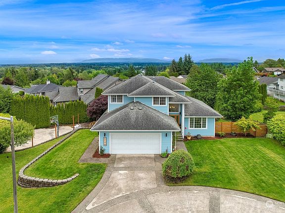 Looking for a spacious 4 bdrm/2.5 bath home designed over 3,000 sq ft, & happens to have gorgeous Mt Baker views? You've found it! Along w/a traditional living, family, & dining rooms, this home also features a finished basement (completed in '19) w/bonus room, bdrm, multipurpose room, & plumbed for a bathroom...all accented by exposed beam work & new flooring. Enjoy modern upgrades including new siding, new decking, & heat pump for year-round comfort. Even the deck doors open outward to maximize the flow. The expansive lot not only offers stunning mountain views but also includes a sport court for outdoor activities or use as space for that boat/RV. This property combines modern amenities w/scenic beauty, making it a perfect retreat.