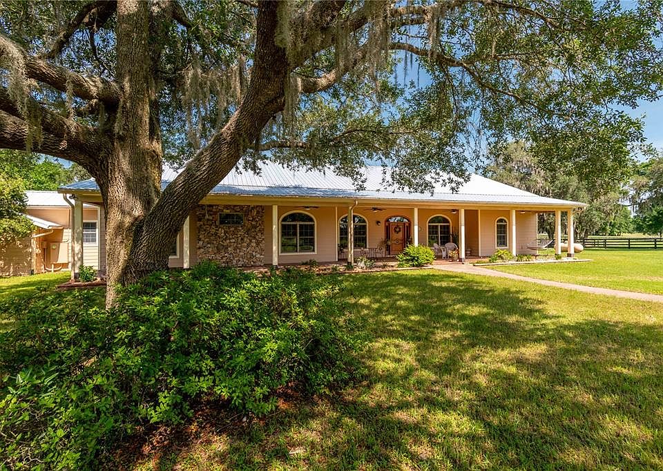 Here it is. A hard to find 21+ high and dry picturesque acres featuring a custom-built home, a BRAND NEW 12 stall center aisle barn, a fully insulated 1200 sq. ft. shop, an equipment barn, a 67’ round pen, 4 oversized paddocks with auto waterers and fenced with safety V-mesh fencing all within minutes to both HITS and WEC and located within the farm preservation area of NW Marion County. The home is an open split bedroom floor plan with cathedral ceilings, custom Anderson windows, a wood burning fireplace, dual tankless water heaters and has great curb appeal as it features mature landscaping, an expansive front porch with tongue and groove ceilings and a stunning mahogany door. The gourmet kitchen will please the most demanding chef as it features stainless steel Thermador appliances, granite countertops, a center island with built-in wine storage, and a large walk-in pantry. The home includes a formal office as well as a large covered lanai with ceiling fans, wet bar and TV connection while offering a stunning view of the property. The massive master suite is sure to impress with a private lanai entrance, his and hers walk-in closets, both a dual vanity and a dual shower, a jacuzzi garden tub, and a toilet closet. Recent upgrades to the home include fresh paint throughout, Spectrum high speed internet, a new backsplash and bypass closet doors throughout. The dual AC was replaced in ’23 and a new metal roof was installed in ’20. A newly constructed barn features 12x12 stalls (12), a 16’ center aisle with a cross breezeway, recessed mats throughout, a half bath, an air-conditioned tack room with a washer/dryer connection, and a dual wash rack. An additional 2/2/2 block home (built in 2018) with a separate entrance and situated on a contiguous 10 acres is also available. Close proximity to feed and tack vendors, veterinary providers and show venues make this farm a must see.