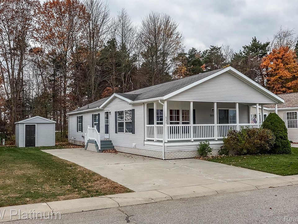 Welcome to The Lakes Estates! This spacious 3-bedroom, 2-bath home offers 1,680 sq. ft. of comfortable living at an affordable price. Enjoy a bright, open layout featuring a cozy fireplace, a nicely appointed kitchen with all appliances included, and a large, beautiful front porch—perfect for relaxing or entertaining. Master bedroom features large bathroom w/soaking tub and large walk in closet. Storage shed included. Located in a very well-maintained community with a clubhouse, fitness center, pool, and fun social activities. Boat and RV storage is also available. Lot rent is just $549/month, making this an excellent value in a desirable park setting!