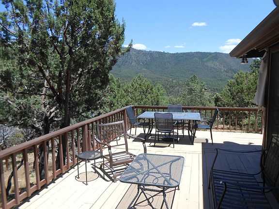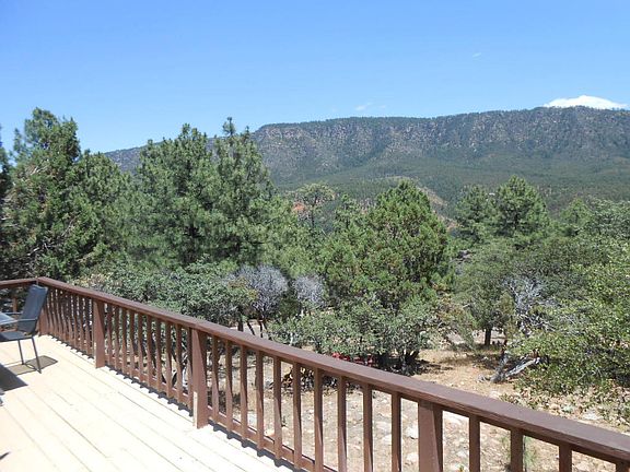 WHAT A VIEW! Well maintained cabin with slate floors, lots of wood and an adobe brick fireplace. There is a wall of windows leading to the huge front wraparound deck with unobstructed panoramic views from this Portal 2 hilltop lot and a half. New 30 year roof installed 6/27/2016.