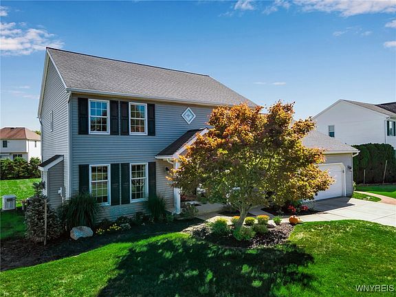 Exceptional 4 bedroom, 2.5 bath Colonial located in the highly sought-after Meadow Lakes community and Clarence School district with bike trails, greenspace and easy access to area shopping and entertainment. From its inviting curb appeal to its bright, beautifully updated interiors, this home blends timeless charm with modern comfort. Perfect everyday living. Step inside, you’re greeted with a welcoming foyer w/open staircase & gleaming hrdwd floors throughout the main living areas and a flowing floor plan that feels both open and intimate. Newly remodeled Kitchen w/dining area features an island w/gorgeous quartz, new prof ss appliances, backsplash, pantry and sliding glass doors opening to backyard. Extending off the Kitchen is the spacious FR w/cathedral ceiling & wall of windows. Spacious front living room w/gas fplc and formal DR w/new wainscotting. Rounding out the first floor is an office, mudroom/laundry & half bath. Upstairs, a spacious primary ensuite w/spa bath, double vanity, luxury soaking tub/shower & WIC. 3 great sized bdrms w/spacious closets & full bath. Lower level is partially finished. Perfect for workout, media & rec space. Professionally landscaped private yard creates the perfect outdoor living space featuring a Trex deck & patio. The perfect yard to add a pool! This beautiful home also offers newer roof, whole house generator, many new windows, carpeting, paint, lighting, window treatments and much more! Nothing to do but move in and enjoy!! Showings commence at noon today. Offers due Tuesday, 10/7, at 1pm.