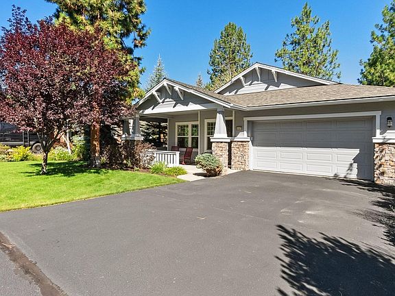 Welcome to this charming single-level home in the highly desirable Parks at Broken Top neighborhood. Located on a quiet cul-de-sac, this residence offers an ideal blend of comfort, functionality, and Central Oregon lifestyle. Updated throughout. The home has abundant natural light and feels open and bright. The home features two open living rooms with vaulted ceilings, a fireplace, perfect for entertaining or everyday living. The kitchen offers ample cabinetry, breakfast bar seating, and a design that makes meal prep a breeze.The primary suite provides a private retreat with a walk-in closet and en suite bath with a soaking tub. Two additional bedrooms offer flexibility for guests, a home office, or hobbies. A 2-car garage adds convenience and storage.Step outside to a wrap around covered porch, a beautifully landscaped yard with mature trees and patio space for relaxing or hosting summer barbecues. Enjoy access to neighborhood amenities including parks, pool, and trails.