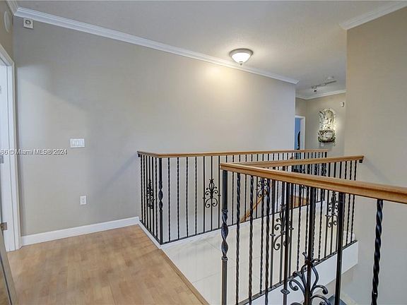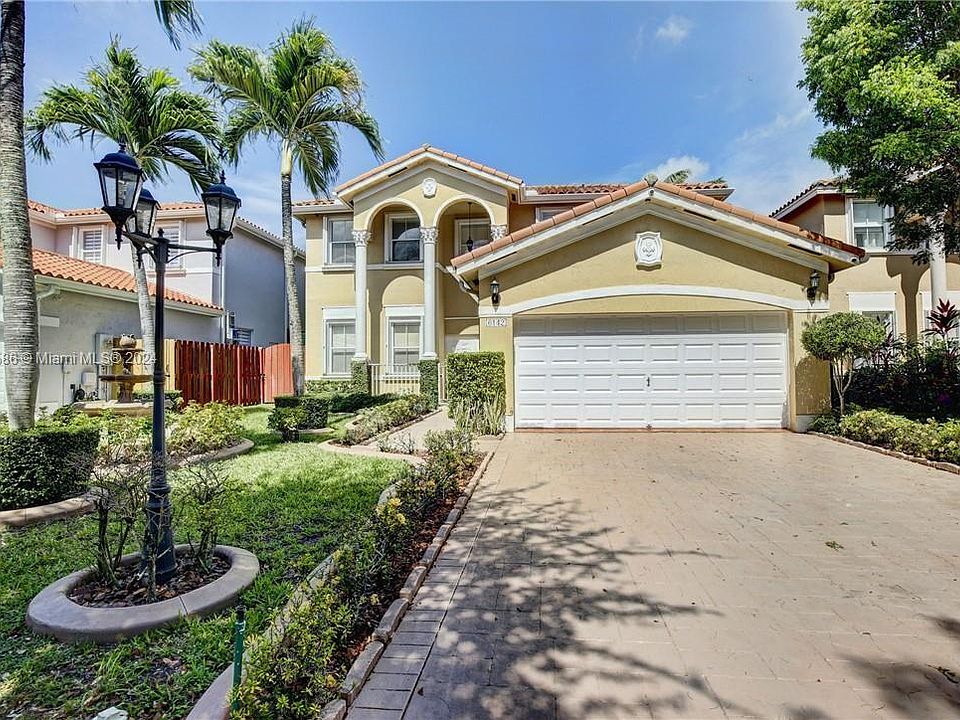 In the quiet, well kept, Deer Creek gated community, this beautifully detailed 5/3 pool home reveals excellent curb appeal of rich landscapes, accent lighting & stamped concrete driveway. Double doors open to the Foyer w/high ceiling & 24”sq porcelain tile flooring that flows thruout all open areas & Baths. Stairs & Bdrms have wood laminate. Formal Living & Dining Rms are centered by a striking Kitchen boasting custom wood cbnts w/crown mldng, quartz counters & glass bksplash. Living Rm accesses the pool & patio. 1st floor has a Guest Bdrm & full Bath. Master reveals custom tray ceiling, 2 walk-in clsts & luxury Bath w/2 vanities, jetted Roman tub & sep shower. Accordion hurricane shutters on all windows & doors to bkyd, New A/C, Heating Pool and New impact front door.