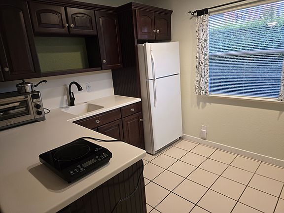 Charming 2 bedroom/1 bath apartment cottage with its own private entrance patio. Located in a nice residential neighborhood on a cul-de-sac with one designated, off-street parking space. Cottage has a full bathroom, living room with floor to ceiling bookshelves, large walk-in closet with solar tubes for added natural light, washer and gas dryer, air-conditioning, and kitchen with full-sized refrigerator, 2 countertop induction burners, and a Wolf Convection countertop oven. Hardwood and tile flooring throughout the cottage. All utilities included, except cable, however unit is cable ready. No smoking. Apartment is presented as unfurnished. Close to UCSB and Camino Real/Costco, walking distance to Calle Real shopping and the library. Prefer no pets, but will consider with deposit. If you have one, please bring with you upon touring.