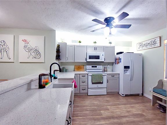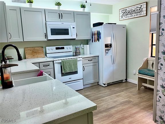 Above the rest! You’ll fall in love as soon as you step foot in this 2/2, Fully renovated condo overlooking the peaceful Whiskey Creek. All new kitchen in 2023 with ceilings raised and wall removed. Stylish wood cabinets and granite counters. Custom-made coffee bar with additional cabinets. Luxury vinyl plank flooring in 2023 that stretches seamlessly throughout all of the rooms. Roomy master bedroom with walk-in closet and sliding door to access the screened lanai. Guest and master bathrooms have been beautifully remodeled. Brand new A/C in 2025. Water heater new 2023. Convenient laundry room inside with newer washer and dryer. Not only will you love everything about this Condo but you’ll also love its desirable Whiskey Creek location and great amenities! Take advantage of the community pool, tennis courts, shuffleboard, fitness room, sauna, game room with pool table, and more! Enjoy fun social events too. Like to golf? Then check out the Whiskey Creek country club! A public course and restaurant with social and/or golf memberships available! These condos provide covered parking, common elevator, no age restrictions and are NOT in flood zone. Very well maintained with your water and sewer included. You won’t have to venture far for entertainment, great restaurants, and shopping! Easy access to Historic downtown, the beaches and downtown Cape Coral. Don’t miss out on this one!