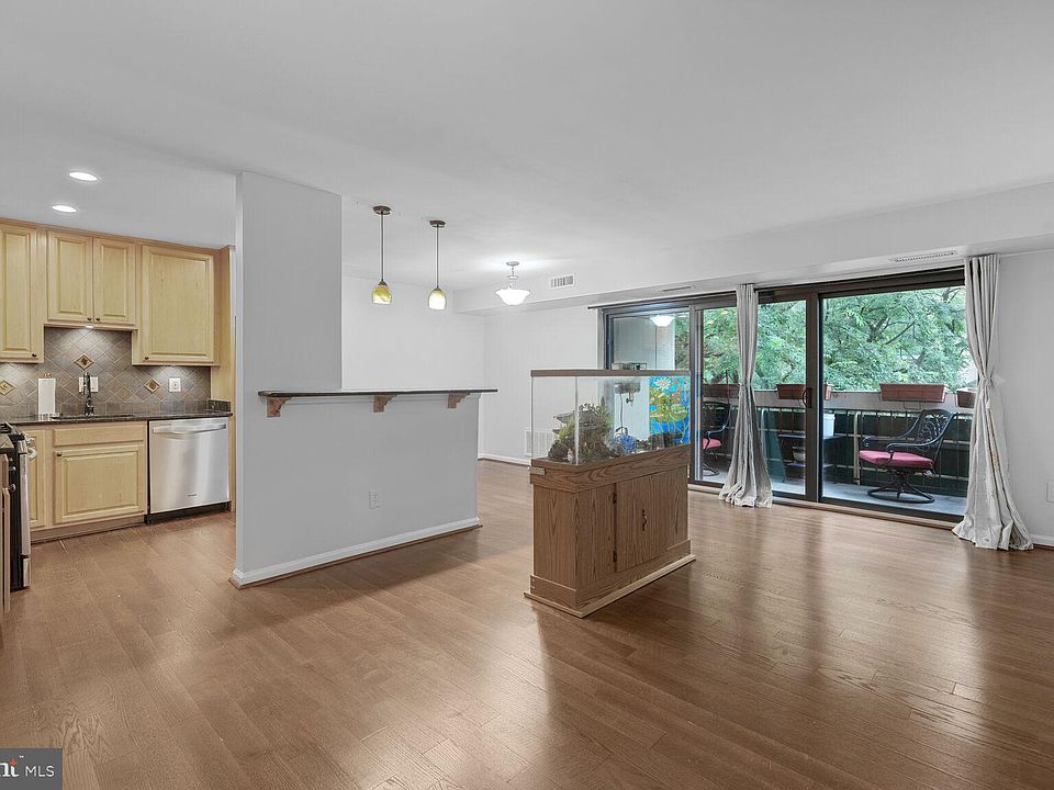 Beautifully Updated and Move-In Ready! This freshly painted 2-bedroom, 1.5-bath condo in highly sought-after Lafayette Park offers a modern open-concept design. The fully renovated kitchen is a showstopper, featuring granite countertops, stainless steel appliances, a stylish backsplash, and a breakfast bar that flows seamlessly into the spacious living room, perfect for entertaining or everyday living. Additional features include recessed lighting throughout, gleaming wood floors, custom ALFA closet systems in both bedrooms and the hall closet, a built-in entertainment center, and an updated full bathroom with marble flooring. Located in an FHA-approved community with top-notch amenities including a swimming pool, basketball court, and parking, all just minutes from shopping, dining, Metro, and major commuter routes. Enjoy the best of convenience and comfort in this prime Falls Church location!