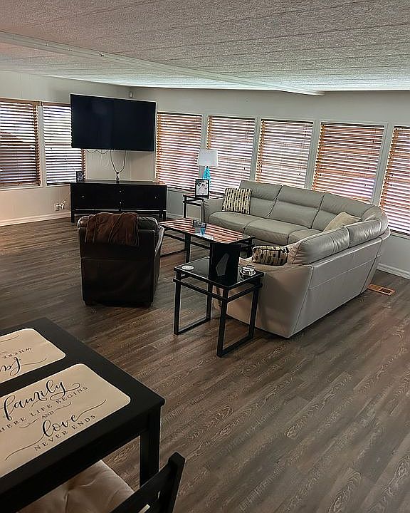 Step into a beautifully maintained, 2-3 bedroom, 2-bath double-wide mobile home offering 1,636 ft² of air-conditioned comfort plus a stunning 12' × 28' tiled Florida room—your perfect space for sunlit mornings, relaxed afternoons, 3rd bedroom or man cave.