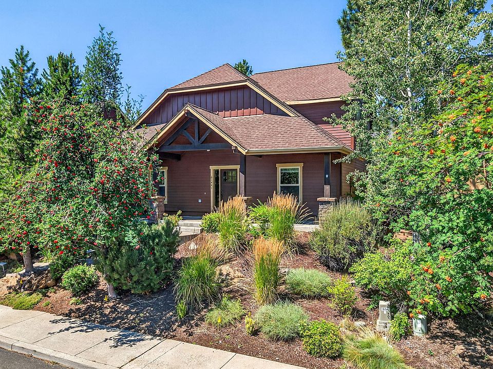 A charming covered front porch and beautiful mature landscaping provide an inviting welcome to this 4 Bedroom home on Bend's Westside. Starting with a spacious great room with soaring vaulted ceilings, gas fireplace and newly refinished hardwood flooring leading into the nearby kitchen with breakfast bar seating; fridge, range & dishwasher, all recently replaced (2022), and adjacent dining area that opens to the fully fenced backyard and paver patio. The full en-suite primary bedroom featuring a large bath with dual sinks, walk-in shower & large closet, along with a sunny guest bedroom/den, laundry room & powder room complete the first floor. The second level, with fresh new carpet, encompasses two additional guest bedrooms, bath and an oversized bonus room with wet-bar and space for all kinds of fun. Ideally located in the hub of the great Central Oregon outdoor playground, with easy access to the slopes of Mt Bachelor, Cascade Lakes, Mountain Biking & the Deschutes River
