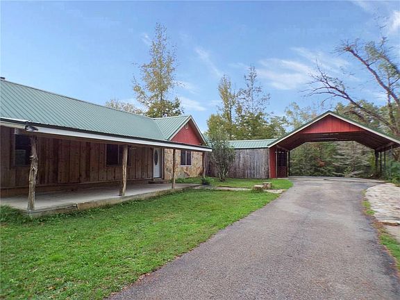 PRICE IMPROVEMENT! Welcome to your dream escape—a picturesque 3-bedroom, 2-bath cottage perfectly nestled on over 4.5 stunning acres! This enchanting property combines rustic charm with practical living and working spaces. Approaching from your private drive, you’ll be greeted by exquisite custom stonework on the walkway, leading you to the inviting pine wood covered porch and entrance to your secluded family cabin. Step inside to discover a spacious living room adorned with rich pine wood panel walls and a soaring vaulted ceiling that creates an airy and welcoming atmosphere. Cozy up by the wood-burning fireplace as you watch the sunlight dance through the ample windows, offering breathtaking views of your expansive land.