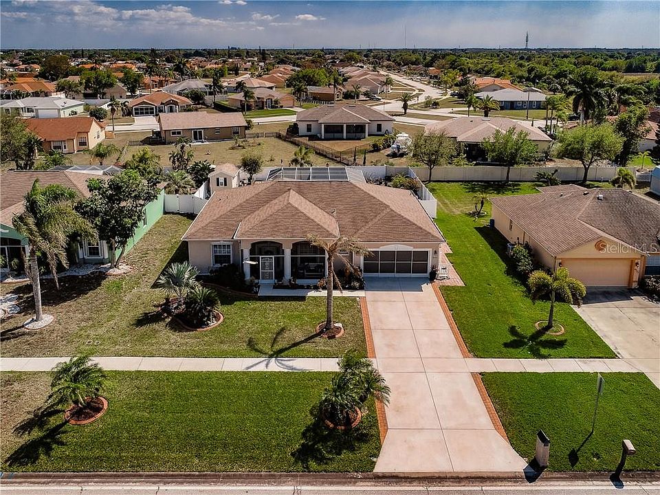 Stunning 3 bedroom pool home just 15 minutes from Englewood beaches is located in the popular deed restricted community of the Gardens of Gulf Cove. Plenty of room for family and friends with 2000 square feet of living space, great room, formal dining, and study. Home offers open floor plan with porcelain tile throughout, fresh interior paint with color accent walls, new decorator light & fan fixtures, remodeled baths, new tile flooring in bedrooms, and new blinds. Great room has built in area for an entertainment center and has view of pool area and back yard. Eat in kitchen boasts new dishwasher, 3 door fridge, task lighting, granite counters, pantry, wood cabinetry, cozy eating area, and opens to the great room for easy entertaining. Master suite has walk in closet and en suite bath with decorator bowl sinks, soaking tub, and custom tiled walk in shower. Other features include water softener, public water and sewer with deep well for irrigation, storm protection for windows and hurricane code garage door, and new privacy fence. You will enjoy spending many relaxing hours in your saltwater pool with both solar and electric heat and sunbathing on your extended lanai. Lovely back yard with preferred sitting area, decorative rock, and flowering foliage. Separate shed provides extra storage or your tools and "toys". Impressive curb appeal with landscape curbing, screened front entry, and porch. Community amenities include 2 pools, shuffleboard, tennis courts, bocce ball, and rec center with pool tables & exercise equipment. Proximity to waterways, local beaches, dining, shopping, and golf courses makes this property ideal for the Florida lifestyle. Also, easy access to public parks with bike and walking trails and picnic areas, and boat ramps providing access to many waterways, beautiful Charlotte Harbor, and the Gulf of Mexico. This tastefully appointed home is a must see!