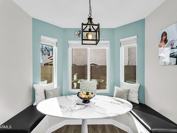 BACK ON MARKET because buyer was unable to perform - their loss is your lucky day!! Adorable and meticulously cared for CORNER LOT in Red Mountain Estates. This home is absolutely IMMACULATE and is perfectly move in ready. Gorgeous layout with vaulted ceilings, lovely ceiling fans, remodeled kitchen (stunning island, pendant lights, QUARTZ counters) and baths, and a stunning, shaded, large and private backyard. Sellers have paid attention to every last detail, from the perfect and adorable primary shower and tub, to the built-in kitchen nook seating, to the pavered back patio, down to the new MISTING SYSTEM in the back yard. Neighborhood has many amenities (golf, pickleball, swimming) and home is close to the 202, plus fantastic Longbow Marketplace.