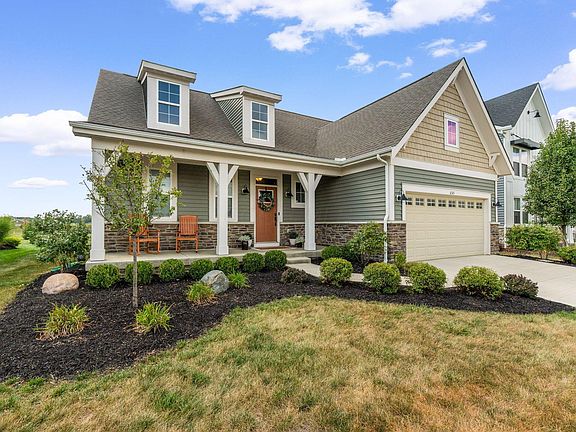 This better than new home is full of upgrades! Fischer homes 'Keaton' model features a full finished basement with full bath and a first-floor owner's suite. Rare floorplan with mainly 1st floor living. Stunning open floor plan. Kitchen has grey cabinetry, SS appliance, granite counters, pendant lighting, walk-in pantry, huge center island, & gas range. Huge full finished basement has another full bathroom, wet bar, murphy bed, & storage space. Concrete patio has a remote-control awning and view of the community pool, cabana, clubhouse, pond and walking path. Second floor has 2 additional bedrooms, loft, & dual sink vanity bath, plus huge linen closet. Wrought iron fenced yard. This home checks all the boxes!!