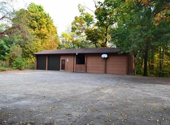 Open Sunday 10/18 from 2-4PM Situated on nearly 4 acres of treed land providing the ultimate private setting. Perfect for someone with cars, toys, and/or hobbies with room for an RV or anything else you may have. There is a large 4 car detached garage with an office and kennel area along with a 32 x 40 additional building. This custom built home provides a spacious living area with wood burning fireplace, 3 large bedrooms, full basement with 2nd wood burning fireplace, eat-in kitchen with new appliances, counter tops and ceramic tile floor. New carpet throughout, new roof on the house 2013, new deck 2008. This is a hard to find property in a great location that provides gorgeous views of nature and wildlife year round.