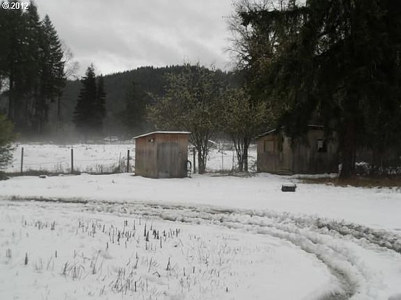 Private 4 acre parcel with trees and pasture. Large shop on property has small living space inside with kitchen, bathroom and laundry area. Manufactured home was flooded and uninhabitable.