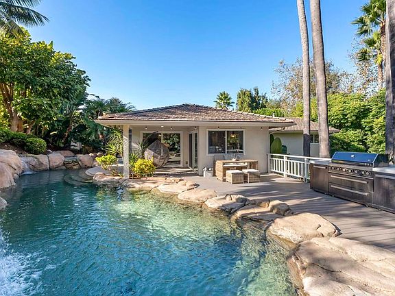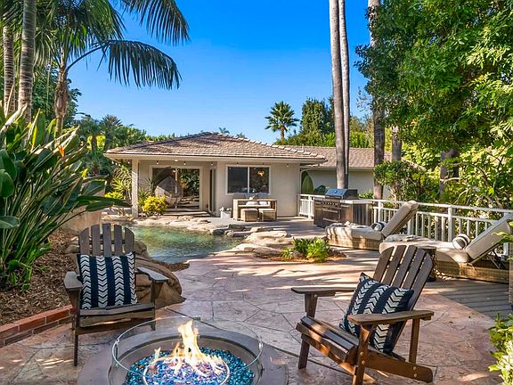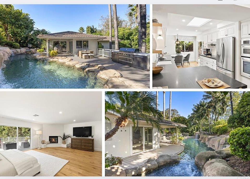 Shangri-La in the Covenant Discover your private oasis—an elegant, single-level-style retreat nestled on a beautifully landscaped, nearly half-acre lot in the heart of the Covenant. Just steps from the historic and charming Village of Rancho Santa Fe, this hidden gem on a private cul-de-sac along Camino Selva offers the perfect balance of tranquility and convenience. Tucked amid lush greenery, this thoughtfully renovated home blends modern sophistication with timeless comfort. Every room captures serene garden views and complete privacy. The interiors feature meticulous updates throughout, including a stunning chef’s kitchen, reimagined baths, custom lighting, newer windows and sliders, and wide-plank white oak flooring. An open-concept design connects the kitchen, spacious living room with fireplace, elegant dining area, and guest powder room—each space flowing effortlessly to the outdoors. The expansive primary suite on the main level is a private sanctuary, complete with a cozy fireplace and spa-inspired bath. Upstairs, two additional bedrooms, two full baths, a laundry room, and a relaxing sauna offer flexibility for family or guests. Outdoors, lush gardens and thoughtfully designed entertaining spaces invite you to unwind. The freeform pool and spa—accented by natural rock water features—create a resort-like ambiance. A vibrant landscape of figs, lemons, limes, pineapple guavas, and roses enhances the sense of seclusion and serenity. With its coveted Covenant address, this property also includes eligibility for membership at the exclusive Rancho Santa Fe Golf and Tennis Clubs. Charming, private, and beautifully updated—this is Rancho Santa Fe living at its best.
