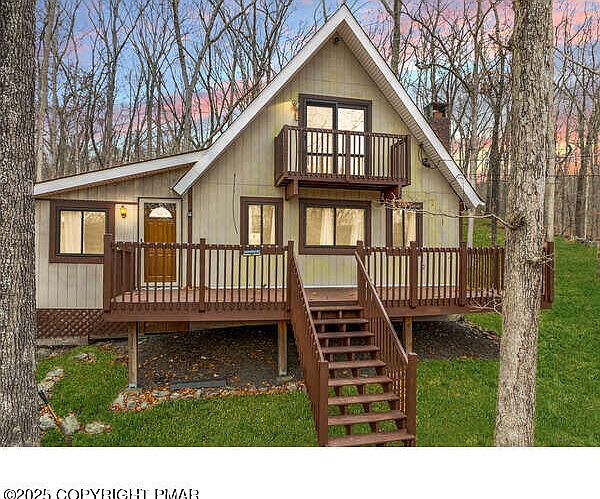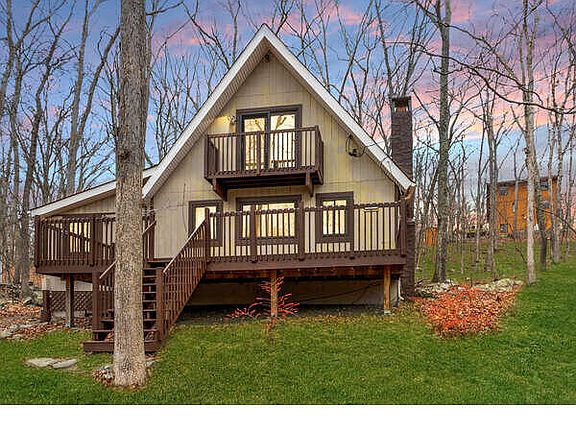 CHARMING COUNTRY MOUNTAIN CHALET Lovingly Maintained from 25 Years of Ownership in Amenity-Filled Gold Star Poconos Gated Community of Saw Creek Estates! Charming 4BR 2BA Classic Chalet Home Features Spacious Living Room w/ Wood-Burning Fireplace, Rustic Exposed Wood Beam Ceilings, Eat-In Kitchen w/ Breakfast Bar & Serving Window, Separate Dining Area Plus Sun Room w/ Skylights & Ample Front Windows for Natural Lighting! Large Convenient 1st Floor Bedroom w/ Main Tiled Bath Plus 3 Cozy Bedrooms Upstairs w/ Private Juliette Balcony Overlooking Front Deck & 2nd Full Bath! Just Add Your Personal Touches! SAW CREEK ESTATES Voted #1 Community in the Poconos is a Private, Gated Community Offering an Abundance of Year Round Amenities Including Fitness Center, Indoor Pools, Outdoor Seasonal Pools, Indoor/Outdoor Tennis, Basketball Court, Pavilion Picnic Area, Baseball Field, Beach. Boats, Summer Camps, Private Ski Area & Ongoing Community Events Year Round! Call Today for Your Private Showing!