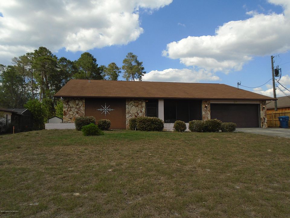 Nice, clean and spacious 3 bedrooms (each bedroom has walk in closets, master with 2), 2 full baths and 2 car garage. Unbelievable living space and closet space in this clean home. Screen enclosed lanai in the front and rear. Large kitchen complete with center island and overlooking the family room with built in shelving. Inside laundry room. Garage with work shop cabinets. Located close to all amenities including the bus line and 10 minute drive to the Bay. Walking distance to the Mermaid State Park and kayaking down the river. Available for more than just an annual lease. Also lease option available. Call for details.