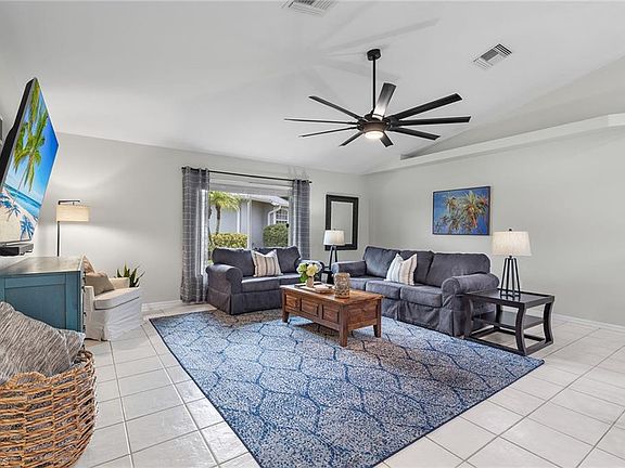 This immaculate property offers manicured lawns and mature trees framing the oversized private lot. You’ll be greeted by the elegance of the formal living and dining rooms, ideal for hosting guests or enjoying intimate gatherings. The heart of the home lies in the open-concept family room, dining area and kitchen, where volume ceilings create an airy atmosphere. French doors open up to the screened lanai, seamlessly blending indoor and outdoor living. You’ll love creating your favorite culinary dishes with gas cooktop and the convenience of gas hookup for the outdoor grill. The expansive pantry ensures ample storage space, while the sizable laundry room adds practicality to everyday living. The split floor plan offers privacy and comfort, with spacious bedrooms and a primary suite with walk-in closets and an en-suite bath. Recent updates, including a new roof, impact-resistant windows and HVAC system, ensure peace of mind and modern efficiency. The addition of a well pump for irrigation and an on-demand tankless water heater enhances convenience and sustainability. Outside, the potential for outdoor living is endless, with room for a pool where you can soak up the Florida sun in style. Meanwhile, new wide plank luxury vinyl flooring adds a contemporary flair to the interior aesthetic. Whether you're a golf enthusiast, tennis aficionado, pickler or simply seeking the quintessential Florida lifestyle, this fabulous home is close to it all. Cinch Home Warranty included. Welcome to your slice of paradise.