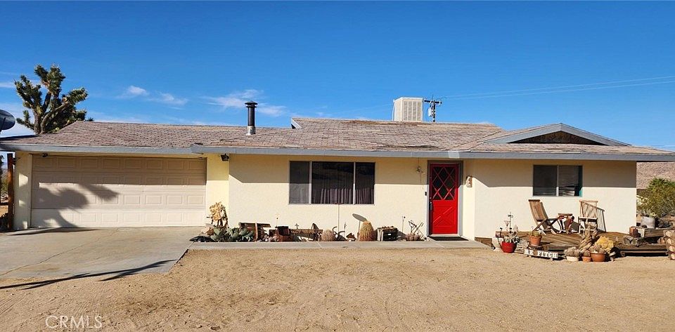 Location, location, location. This 2-bedroom, 2-bathroom home exudes Joshua Tree charm. Positioned on a corner, the 2.5-acre property boasts stunning desert views and an ideal location. There is ample space for expansion on this property, so add your personal touches to this inviting home. The area is simply perfect, with close proximity to Park Blvd, providing direct access to Joshua Tree National Park and Joshua Tree Village. Upscale new homes are springing up in the neighborhood, offering a fantastic opportunity to transform this property into a true desert gem. Enjoy the convenience of a pellet stove. There's also an additional craft room/office and a family room with scenic views for extra space."