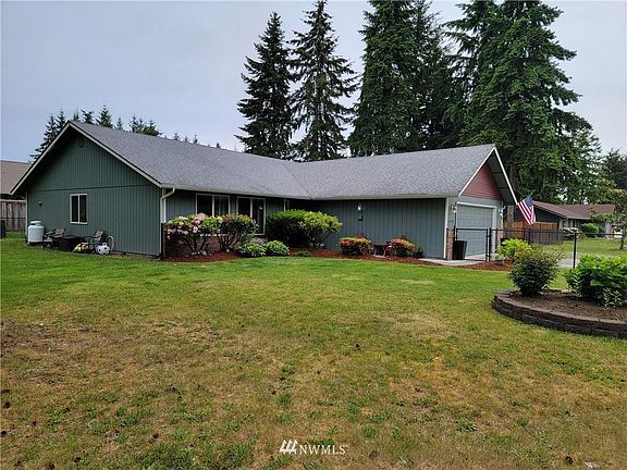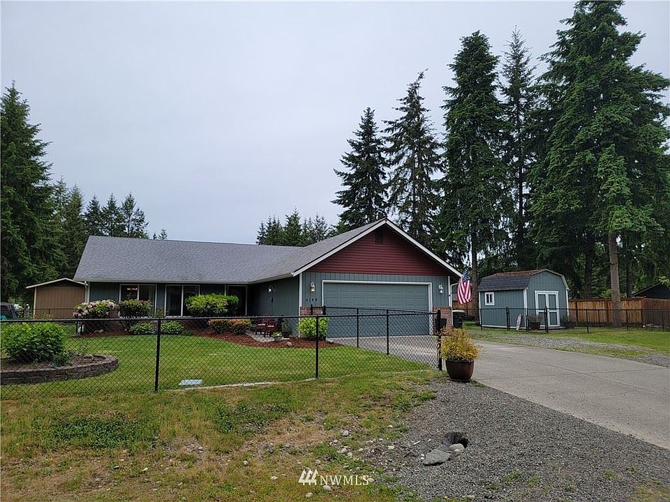 Corner Lot! Beautifully maintained ranch home on large lot with stylish black chainlink fencing and landscaping. Inside welcomes you with a formal living room, dining room, kitchen & family room. Vaulted ceilings, propane stove and a floor plan that flows smoothly. Owner's suite with 3/4 bath & walk in closet. Large 2nd & 3rd bedrooms. All appliances stay. Outside is a partially covered patio off the family room. A garden shed, fully fenced, kids playset & RV parking, NO HOA, and a fantastic location near fast developing Grand Mound with resturants, brewery, Great Wolf Lodge & more. Only 5 minutes to I-5 for a commute to Olympia, Tumwater, JBLM & Centralia. One exit North of the Outlet Stores. Hurry, it won't last!