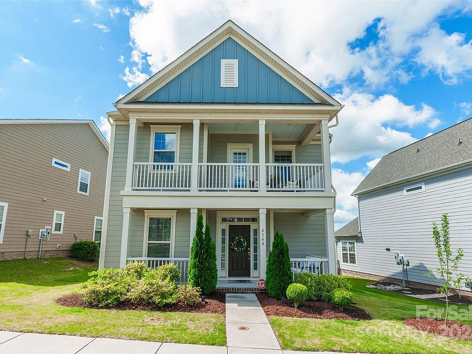 Experience the epitome of luxury living in this breathtaking home, where a charming covered front porch sets the tone for elegance. Inside, prefinished wood floors seamlessly flow through the main living areas, leading to a versatile bonus room. The gorgeous kitchen features stainless steel appliances, granite countertops, and a spacious breakfast bar/island while overlooking the inviting dining area and family room adorned with a gas log fireplace. Retreat to the primary bedroom on the main level, complete with tray ceilings and an ensuite bathroom boasting dual sinks for added convenience. Upstairs, discover a spacious loft and additional bedrooms, with an exit leading to a second covered upper-level porch. Outside, the backyard beckons with a charming patio and detached garage. New paint, ceiling fans & lights. Enjoy community amenities including a pool, cabana, & walking trails to Lake Wylie, all within close proximity to I-77/HWY 160.
