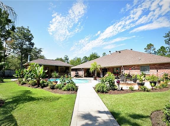 Slice of paradise tucked away on an acre. Custom built all brick 4 bedroom 3.5 bath split floor plan home.No carpet. Kitchen and large laundry boast of custom built cabinets, granite counters.Walk in pantry. Wood burning FP..All bedrooms have large closets. GameRoom with bar. CVD patio, inground pool.. Cabana w/ WB Fireplace, 1/2 bath, electric, cable, kitchen for all your entertaining. Separate garage w/ climate control storage. Too many amenities to list!! Call for your showing today:)