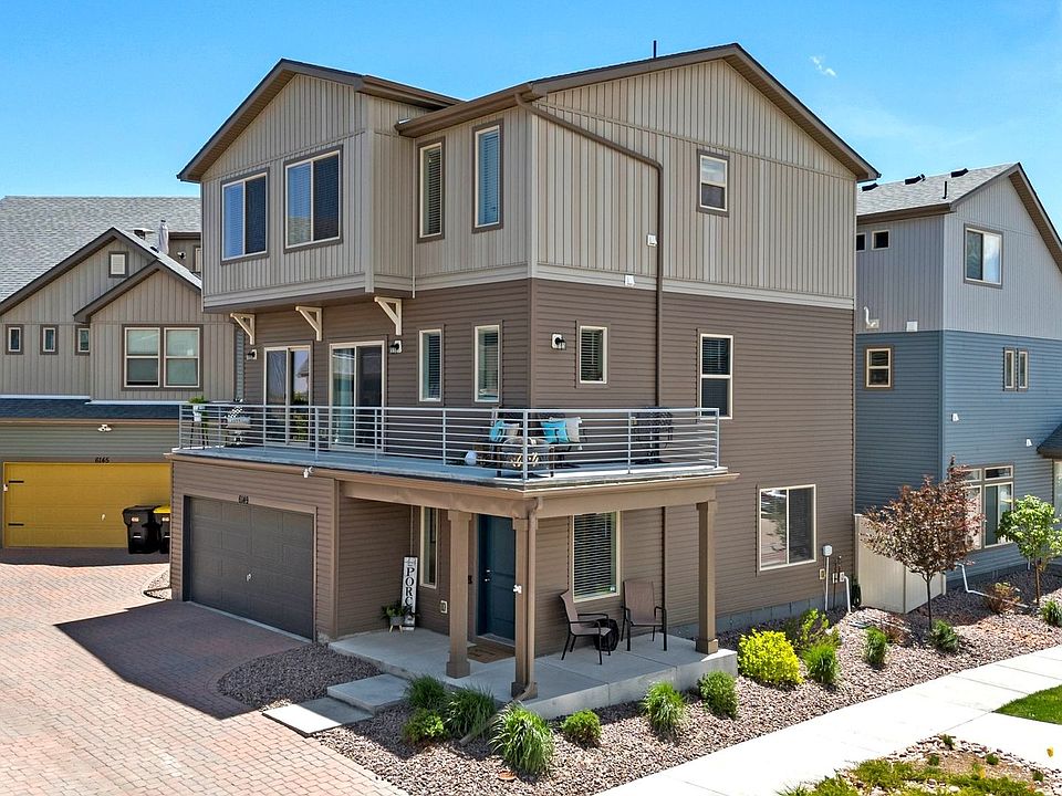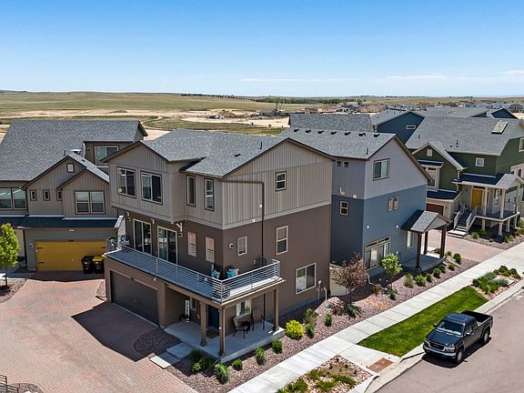 This beautiful home in Banning Lewis Ranch offers 3 bedrooms, 2.5 baths, and a 3-car tandem garage. Enjoy a bright, open floor plan with a chef's kitchen featuring upgraded black stainless steel appliances, granite counters, a large island, and a massive pantry. The second-floor living area includes engineered hardwood floors, a custom electric fireplace, and plenty of natural light. Outdoor spaces include a front porch, a deck off the dining area, and a large wrap-around deck with a fenced backyard, perfect for enjoying Colorado's outdoors. Upstairs, the primary suite features an ensuite bath and walk-in closet, plus two additional bedrooms and a convenient laundry room with washer/dryer included. Extras include A/C, upgraded lighting, and ceiling fans throughout. As part of Banning Lewis Ranch, you'll have access to a water park, pool, tennis courts, pickleball, dog park, and trails. Pets negotiable.