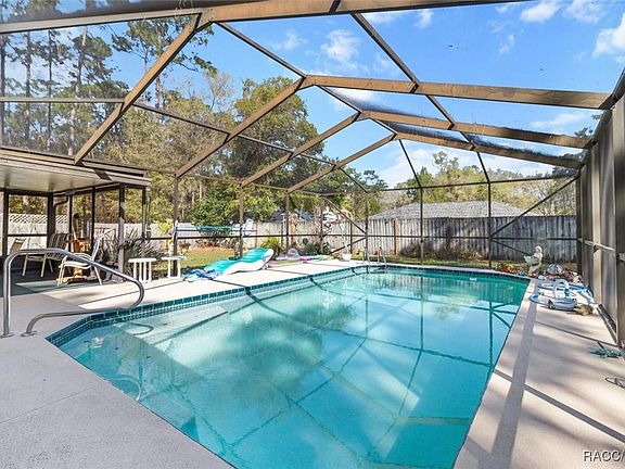 Pack your bags and move right into this lovely furnished Pool home on a double lot. Home offers 3 Bedrooms, 2 Baths and an open floor plan for great entertaining area. Home is being offered fully furnished (Corner cabinet in LR does not convey). Kitchen includes all New Stainless-Steel Appliances. Step out back into a nice, screened lanai that flows right into the full screened patio around the pool. The great double lot gives you plenty of room for a garden, chickens, pets etc. Outbuilding has power and water for all your outdoor tasks. Home is also equipped with a portable generator, Zero Turn lawn mower, Push mower and Lawn Sweeper. Roof was replaced in Feb 2024. Interior has been freshly painted with neutral colors. Don't miss out on this wonderful home. Get your appointment today. Buyer to verify all info.
