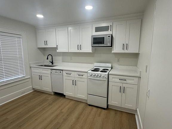 New window blindsNew quarts countertopsCeiling fansWasher and dryerBrand new kitchenLuxury vinyl floor planksAmple counter space