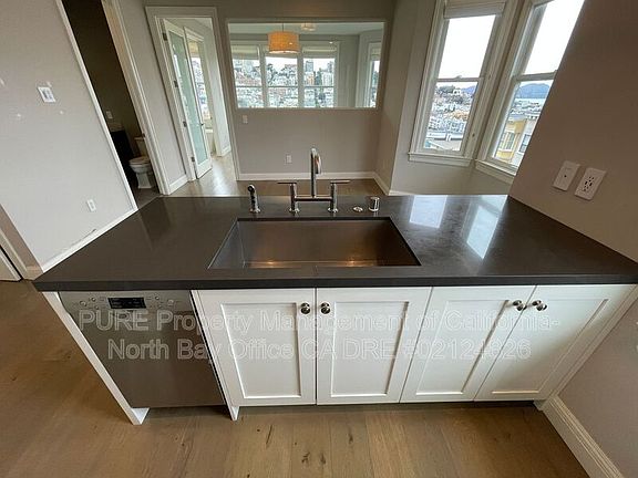 Stunning, top floor one bedroom, one and a half bath luxury apartment in the heart of North Beach. Light filled corner unit with sweeping views of the north bay.
