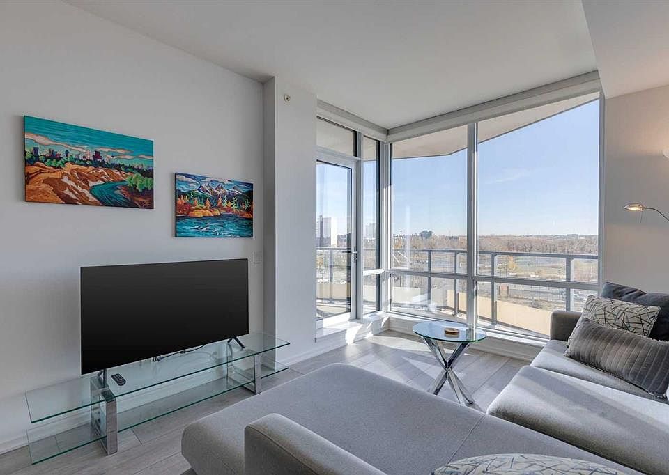 1Bed Cute and Clean Furnished Condo Looking Right At Fort Calgary! Experience urban living at its finest in the prestigious Verve building by FRAM+Slokker, nestled in Calgary's vibrant East Village. This stunning 650 sq ft condo offers a spacious one-bedroom layout plus a versatile "sleeper" den, perfect for a home office or guest space. Fully furnished and outfitted, this immaculate and bright condo is move-in ready, perfect as your new home!