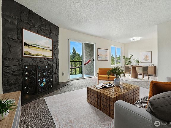 Enjoy an unobstructed view in your own quiet paradise. This well appointed, affordable home features two storage units, assigned parking, two bedrooms and one bathroom with full size laundry machines. Take in the view from your comfortable living room with wood burning fireplace or your private deck. Freshly painted with new flooring in the entry and kitchen, this home is turn key and ready for move-in. Amenities include a dog run, picnic area and community deck. Great HOA with 92% reserve funding. With proximity to Boeing, Paine Field Airport, I-5, downtown, and the Everett waterfront, this home is in a prime location.