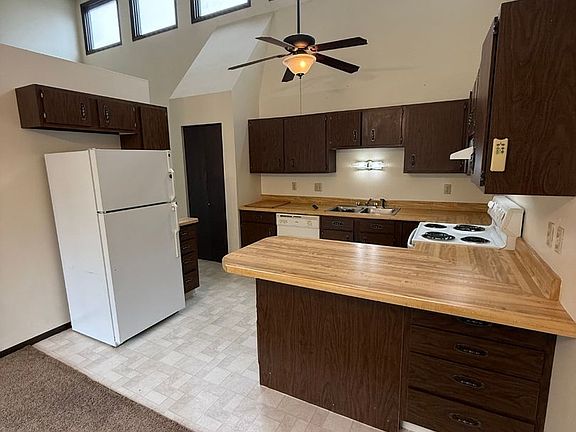 Welcome to 615 9th St. NW #1, a charming 2-bedroom apartment located in the heart of Valley City, ND. This apartment boasts 1.5 bathrooms, providing ample space for your daily routines. The vaulted ceilings add a touch of elegance and create a spacious atmosphere. The living area features a cozy fireplace, perfect for those chilly evenings. The apartment also includes a balcony, offering a private outdoor space to enjoy your morning coffee or unwind after a long day. A detached garage provides secure parking and the additional storage area is perfect for keeping your belongings organized. For your convenience, online rent pay is available, making monthly payments quick and easy. Experience the perfect blend of comfort and convenience at 615 9th St. NW #1.