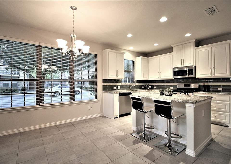 BEAUTIFUL UPGRADED contemporary style! New paint, engineered wood floor, carpet, Solid Oak Wood Stair Case-iron balusters. Lot of windows and natural lighting, upgraded fixtures throughout. Kitchen offers granite counters open to 20ft high ceiling living area, island kitchen, stainless steel appliances. master shower with double sinks and garden tub. Epoxy Floor In Garage. larger lot with driveway parking plus 2 car garage. Energy efficient: Low-E double paned windows, radiant barrier, good insulation. HOA covers all outside care including the roof! The community has a fantastic pool, club house, and playground area. Walking distance to the Dart Station and restaurants, convenient access to 635, 190, 75.