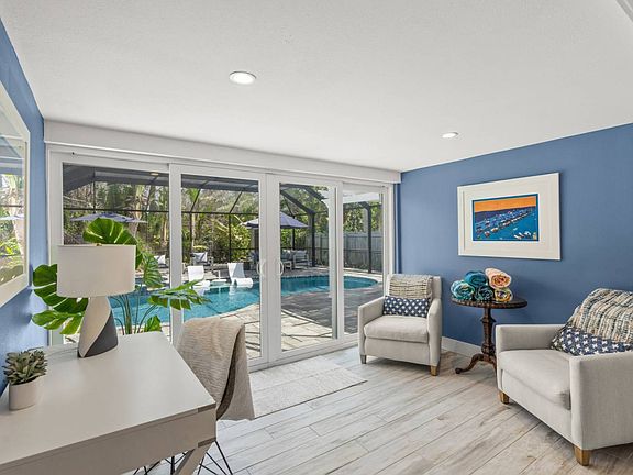 Welcome to The Dockside Getaway on Siesta Key, a sun-filled retreat that blends indoor elegance with outdoor bliss. This upscale canal-access home features a private screened pool with palm-lined patio and sun shelf, a covered outdoor lounge with dining area, seating, and smart TV, plus a shaded front patio perfect for morning coffee. Directly across the street, enjoy a private dock where you can relax by the canal or launch a kayak or paddleboard. Ideally located in a quiet residential neighborhood, you're just minutes from Siesta Key Village and the world-famous white sands of Siesta Key Beach. Inside, enjoy smart TVs, fast WiFi, a fully equipped kitchen, washer/dryer, and driveway parking for two. Beach gear is provided, and one small dog may be approved with a $300 nonrefundable fee (yard is partially fenced). Please note: no smoking, parties, or events, and respect the peaceful community setting.