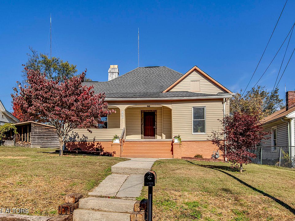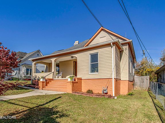 Reimagined and ready to start making lasting memories! This 1920 gem in Old North Knoxville has been updated with quality modern conveniences yet still imbodies the charm of yesteryear. Stately steps lead to a wide, covered front porch with ample room to create a fantastic outdoor living space. The large great room features a German wash stone wall, surrounding the fireplace, with a solid wood mantel and bench seat. An arched doorway to the kitchen reveals top of the line shaker white, soft close custom cabinets, with an abundant number of deep drawers, including a pull-out trash cabinet, brand new deep undermount stainless kitchen sink and faucet, and impressive high-end marble counter tops! All brand-new stainless kitchen appliances remain - including a side-by-side refrigerator with ice and water dispenser. The pendant light above the sunny kitchen sink, and the chandelier in the dining area boast stunning, tiffany style lighting. A perfectly placed guest powder room is located just off the kitchen. The primary bedroom, with ensuite bathroom and large closet, has the cutest reminder of days gone by with an original beveled mirror above the old fireplace mantel. The brand-new primary bathroom features a large, tile surround shower with glass doors, sink vanity with soft close drawers and handsome granite top, new lighting, mirror, faucets, and comfort height toilet. The guest bedrooms share a full bathroom with everything new - tub, sink, vanity, comfort height toilet, and lighting. The laundry area is in the wide hallway between the bedrooms and has built-in shelves to hold all your supplies.