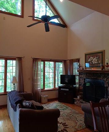 VIEWS!! Come take a gander at this beautiful home nestled in the Pisgah National Forest.Enjoy the outdoors on the wrap around porch or dining on the back deck while you take in the layered mountain view.Step inside the spacious open floor plan of this custom home which has all the amenities to make it your full time residence w/ central heat & A/C, gas appliances,hardwood floors jacuzzi tub,and enough flex space in the finished basement and upstairs loft to function as a vacation home/rental.