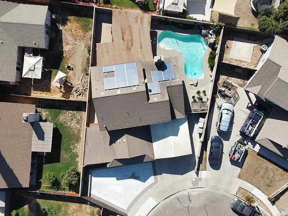 Welcome to 615 Catalina Circle, a spacious and well-appointed home offering 4 bedrooms, 3 bathrooms, and 1,785 square feet of living space. Inside, you'll find a bedroom and full bathroom downstairs, perfect for guests, multigenerational living, or a private office. Energy efficiency is a highlight with an owned Tesla solar system, while peace of mind comes from the owned security system with cameras. The home also features RV parking and a stunning pool with a waterfall, complete with a new pool timer for easy maintenance. Every bedroom is pre-wired for TVs through the walls, ensuring a clean, streamlined look. Additional conveniences include a garage door opener with both app and keypad access, smart-keys for all the doors, granite countertops in the kitchen and bathrooms, and updated lighting in the carport and kitchen. Outside, the low-maintenance yard with sprinklers for the planters allows you to enjoy the outdoors without the hassle. The perimeter of the home is also fenced with stone blocks, making maintenance even easier! With its thoughtful upgrades, flexible floor plan, and inviting outdoor amenities, this home is ready for you to move in and enjoy.